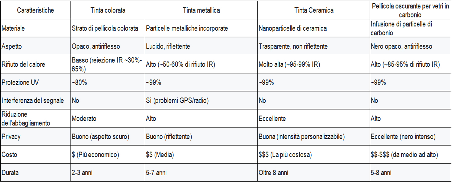 ● Pellicola oscurante per vetri al 15%: questa pellicola crea un aspetto scuro ed elegante e offre maggiore privacy, protezione UV e riduzione del calore.